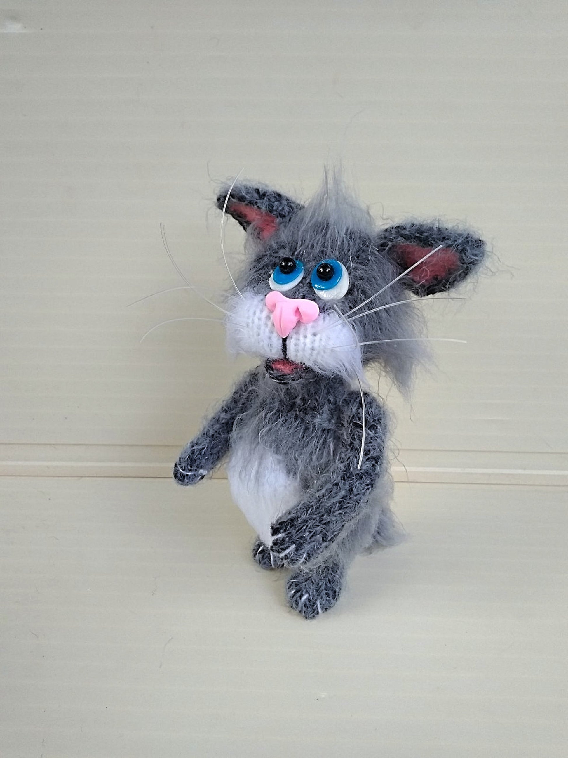 This knitted cat is suitable for everyone who appreciates unique and original things. It can be a cute companion for kids or a wonderful home decoration. Thanks to careful manual work, each cat has its own personality and uniqueness