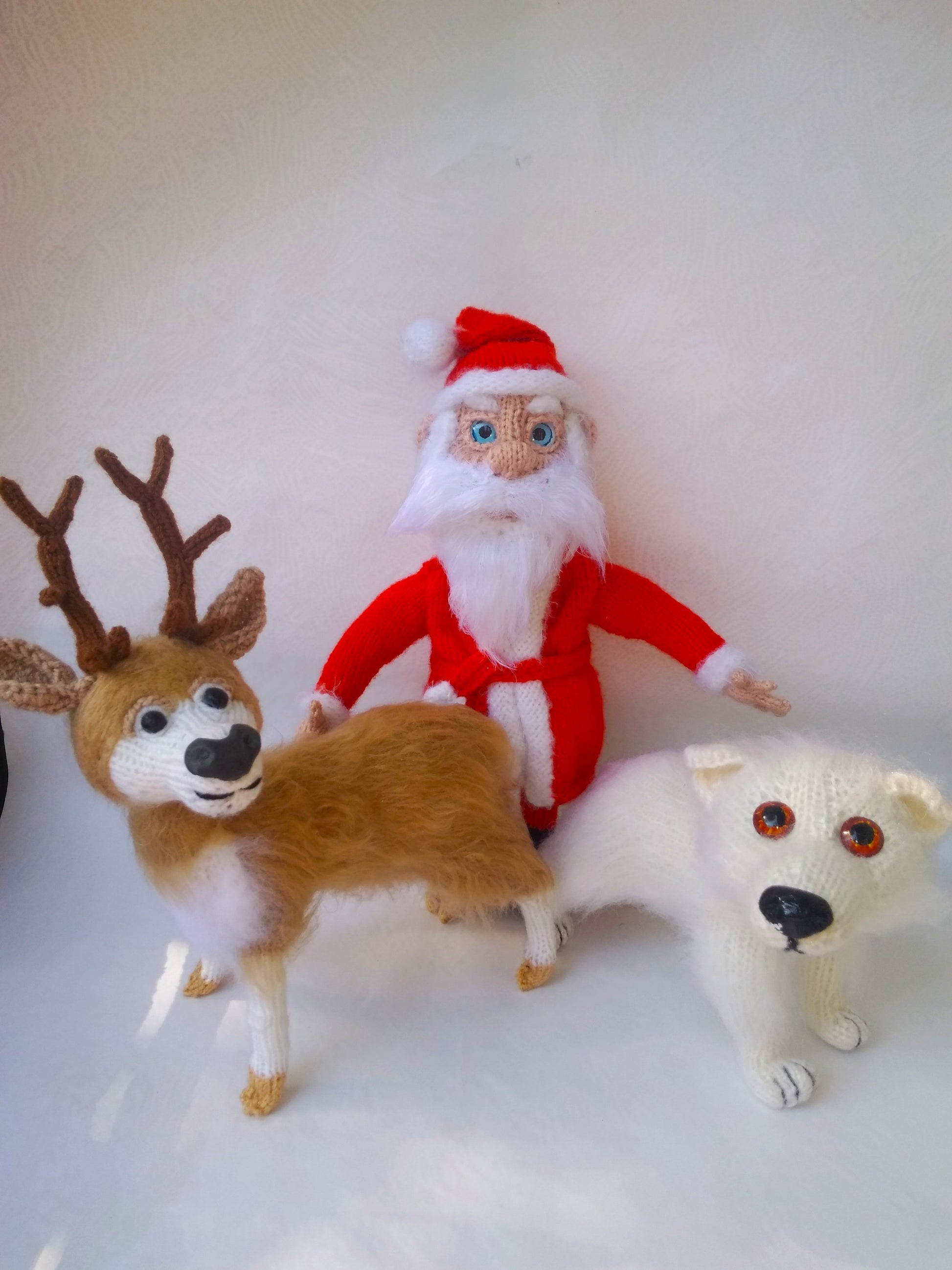 Set of Christmas Characters: Crochet Santa Claus, Deer and Polar Bear Toy