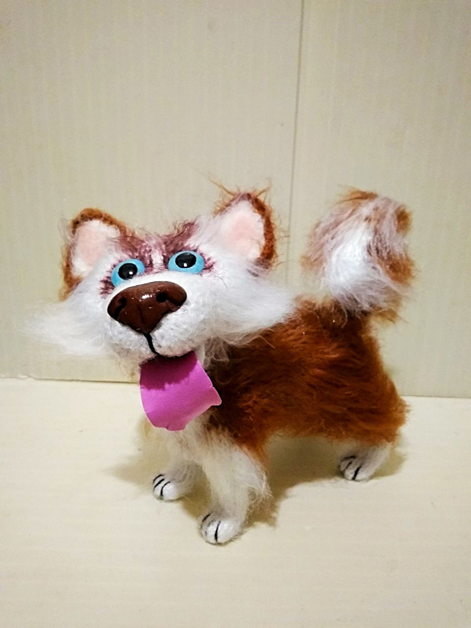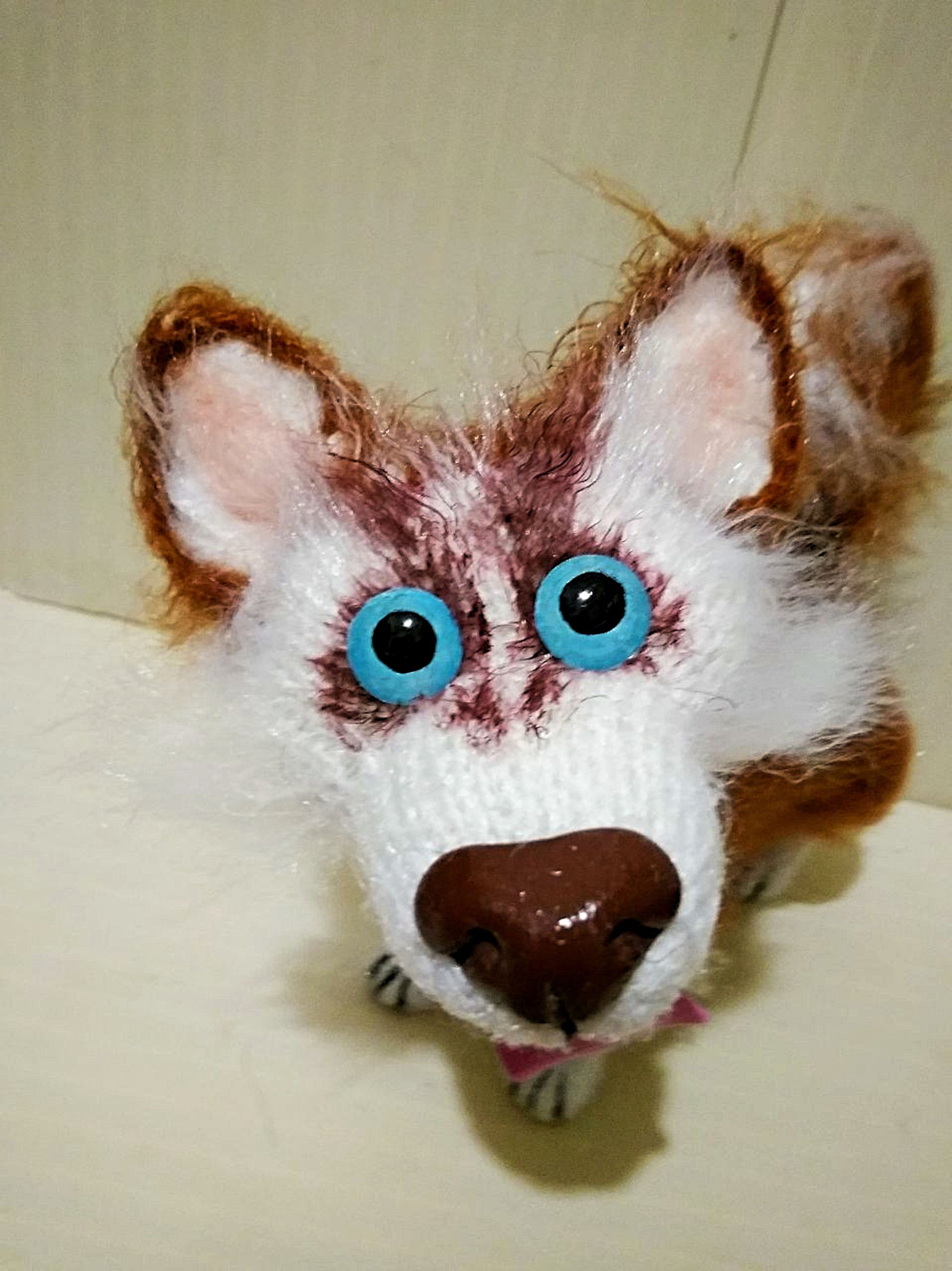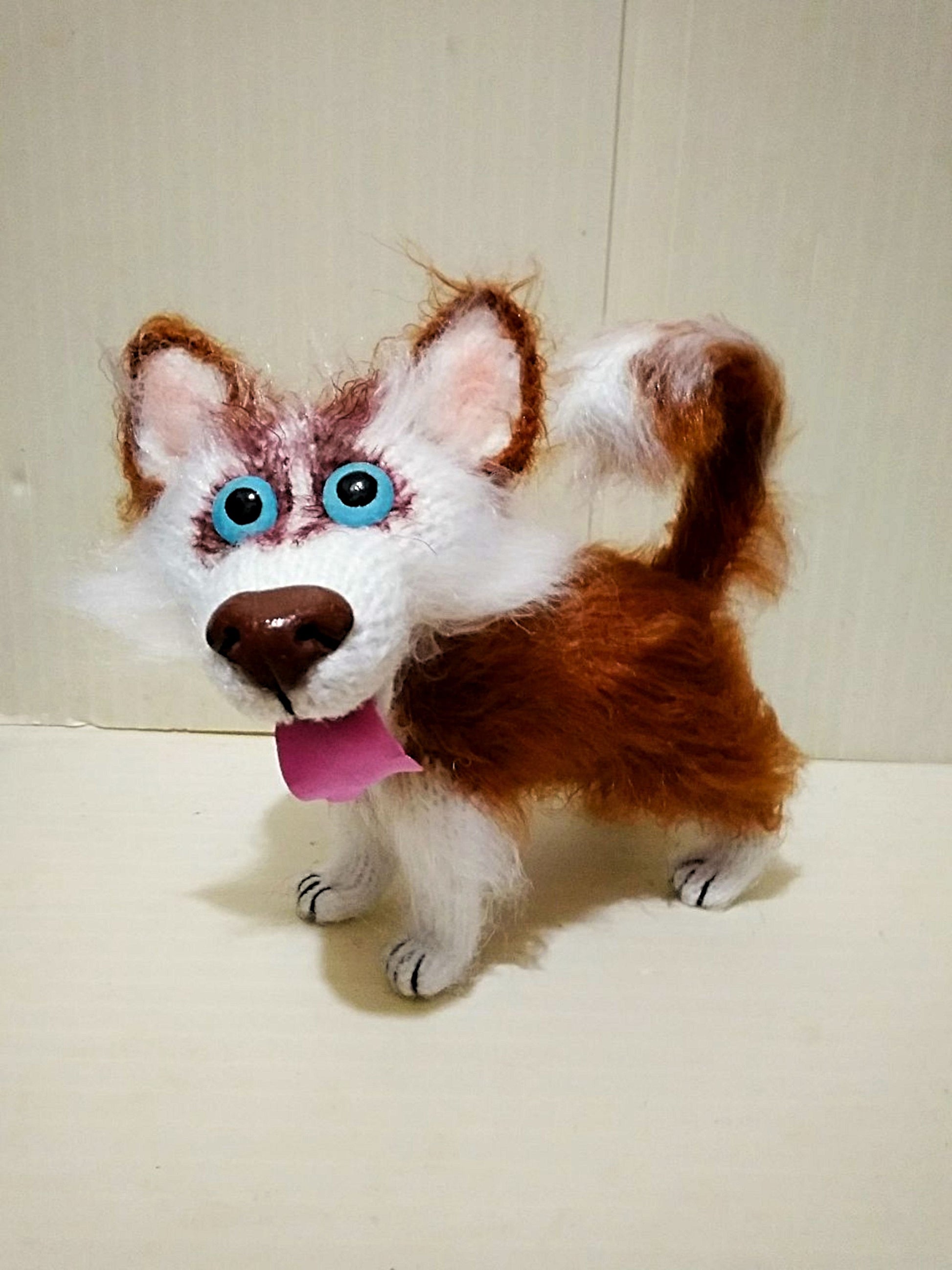 Our handmade knitted toy in the form of a husky, crafted with high-quality acrylic yarn. This adorable toy is perfect for animal lovers of all ages, especially those who have a soft spot for huskies.