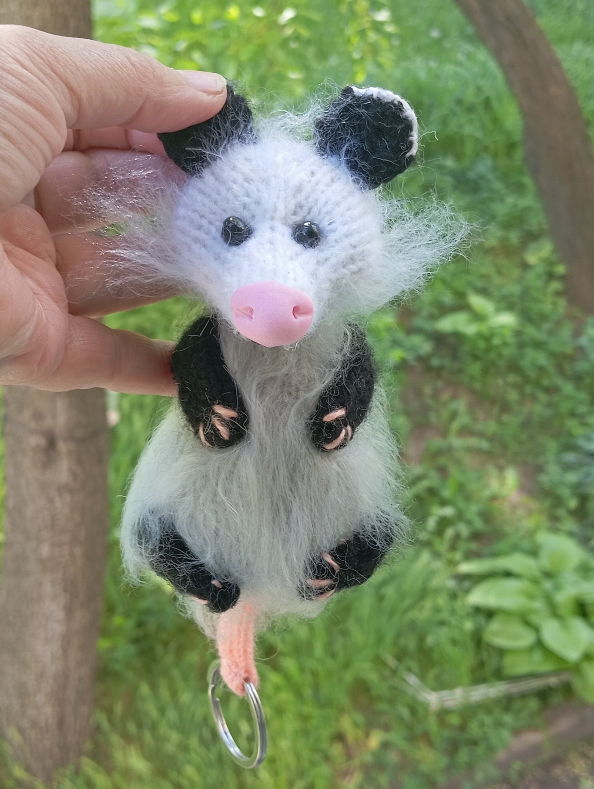 Keychain Possum Plush Toy, Knitted Possum Plush, Crochet Keychain Accessory, Possum Car Rear View
