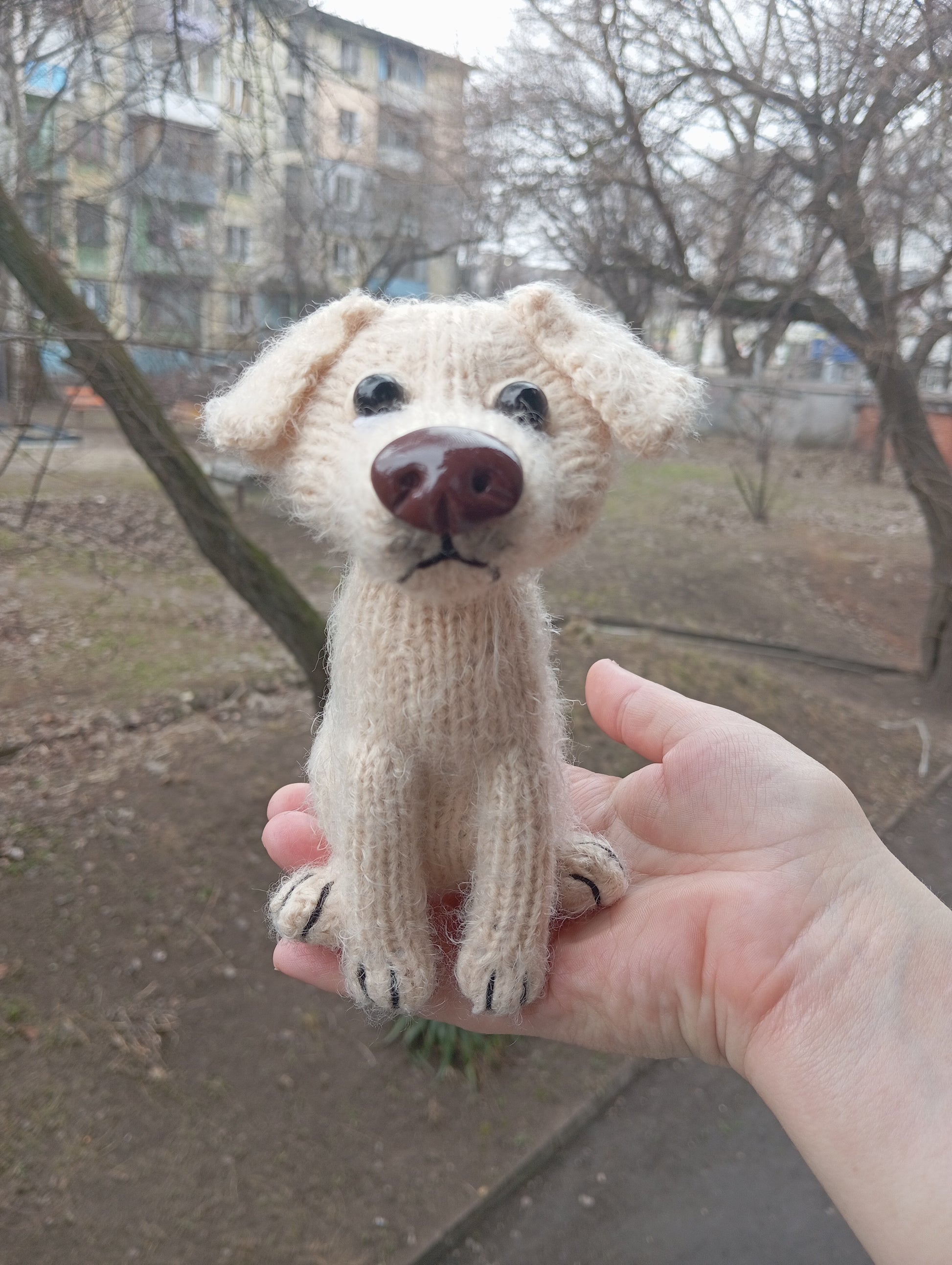 Fall in love with our adorable knitted Labrador dog plush figurine! Handcrafted with adorable knitted details, this Amigurumi Labrador Puppy Toy is perfect for dog lovers. Soft and cute, it would be a great addition to any collection. Bring home this unique and adorable four-legged companion today!