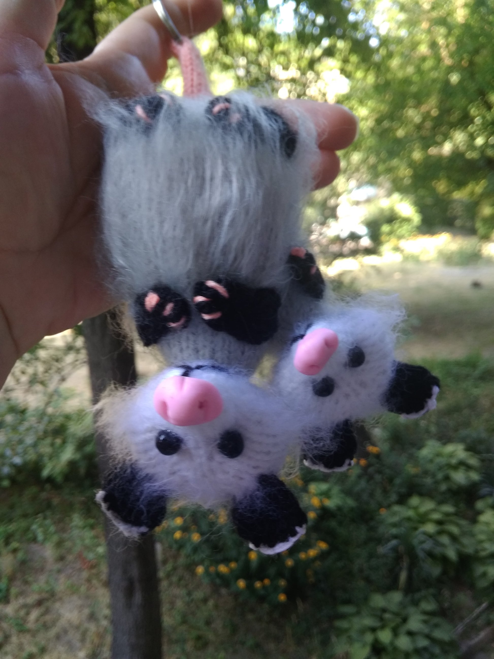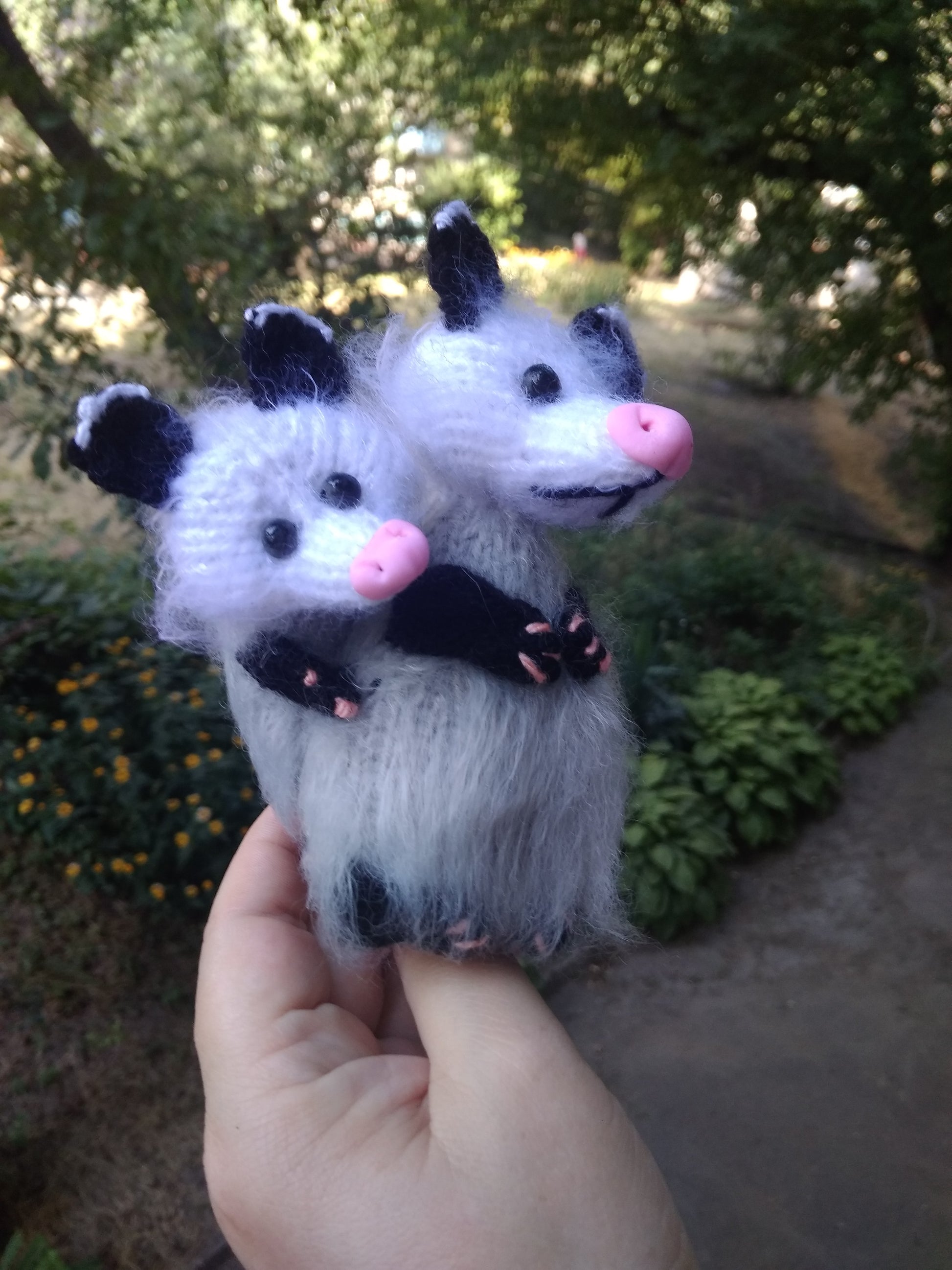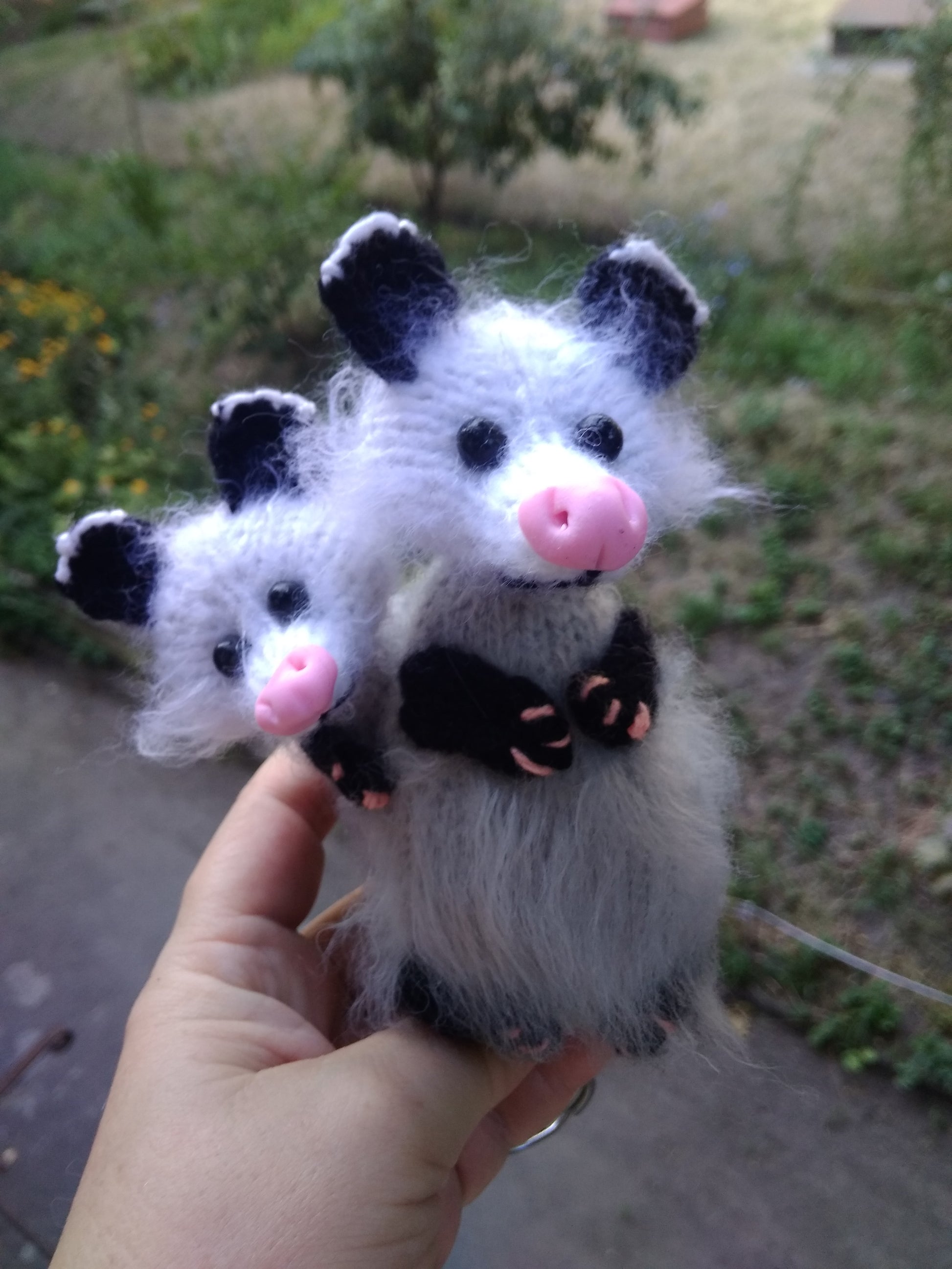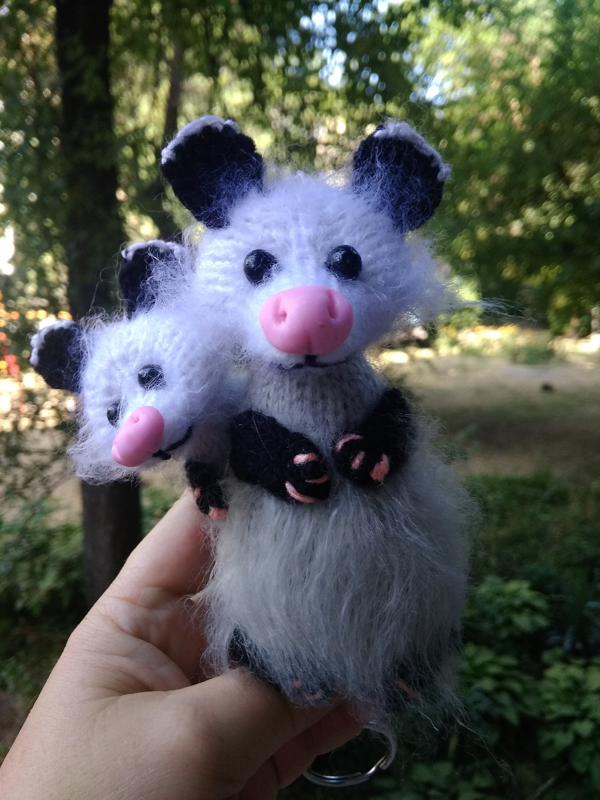 Plush Mom and Baby Possum Toys, Amigurumi Accessory for Bag, Backpack and Car Mirror View